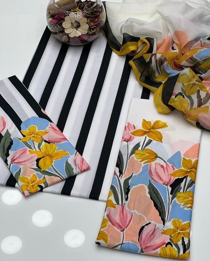 3-Piece Unstitched Swiss Jacquard Lawn Suit with Digital Print