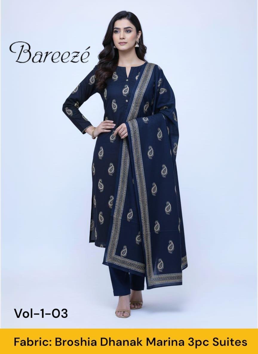 Winter Collection 3PC Dhanak Marina Jacquard Multi Brosha Suit