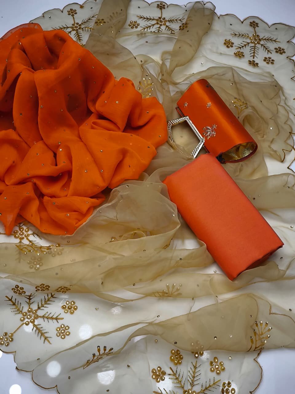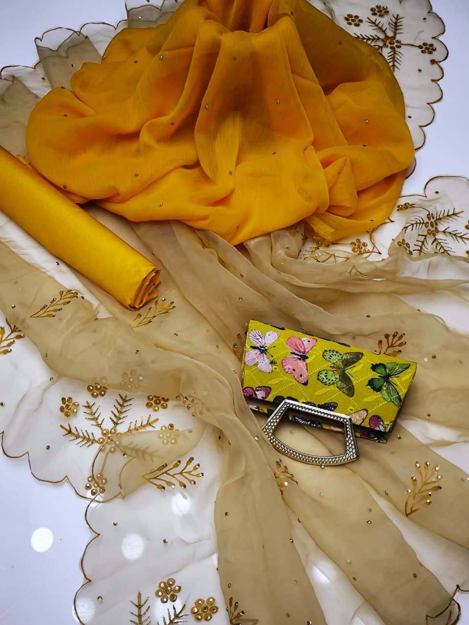 - 🎨 Stunning Organza Handpaint Flower Bunch Style Dupatta