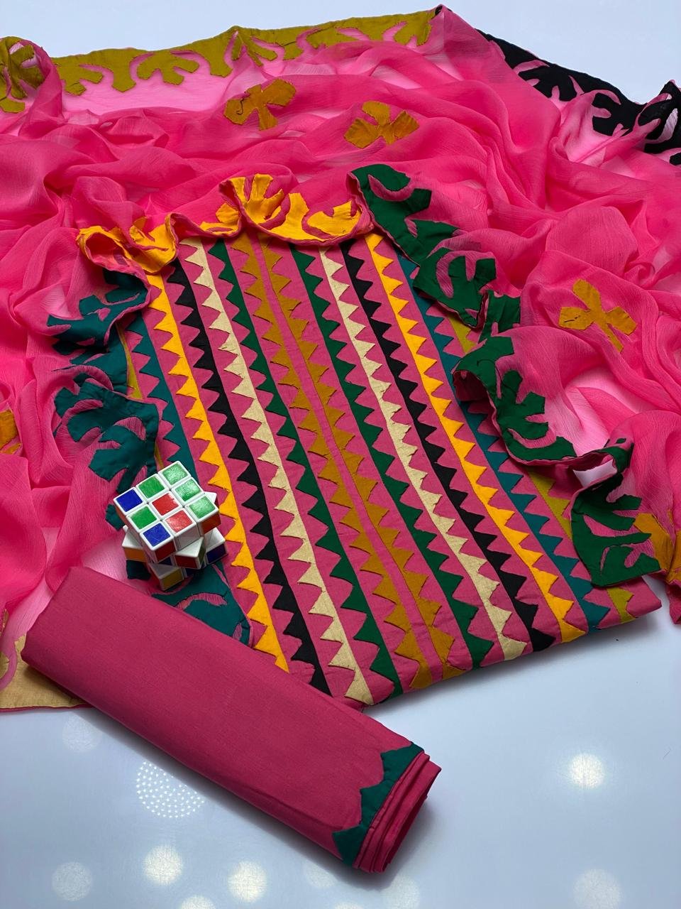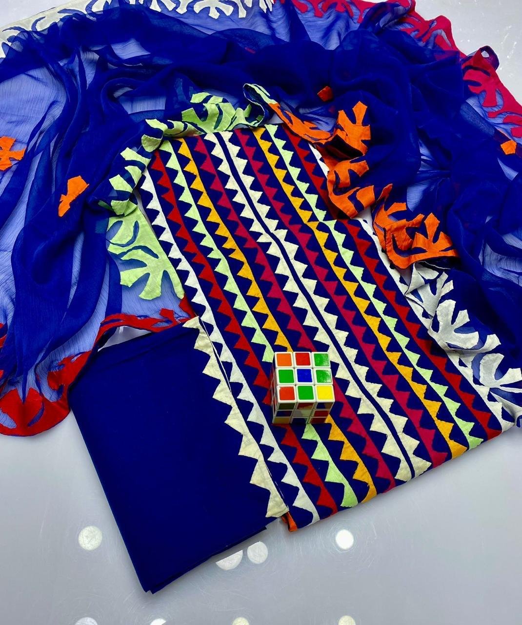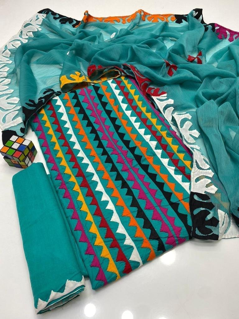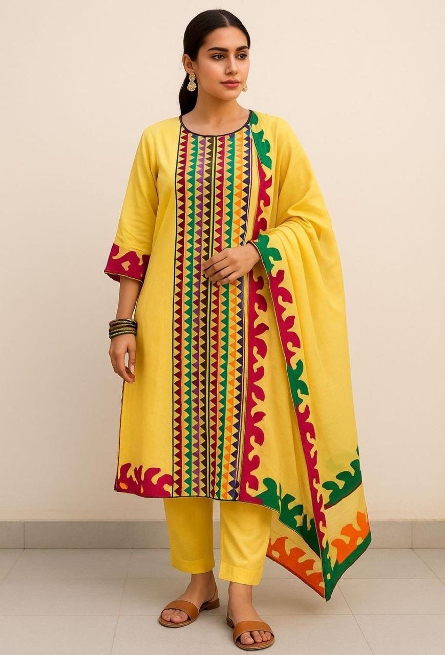 - 🌸 Applique Special Big Flower 3PC Suit featuring beautifully handcrafted big floral applique work for a bold and elegant look.