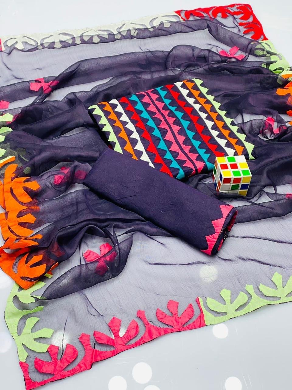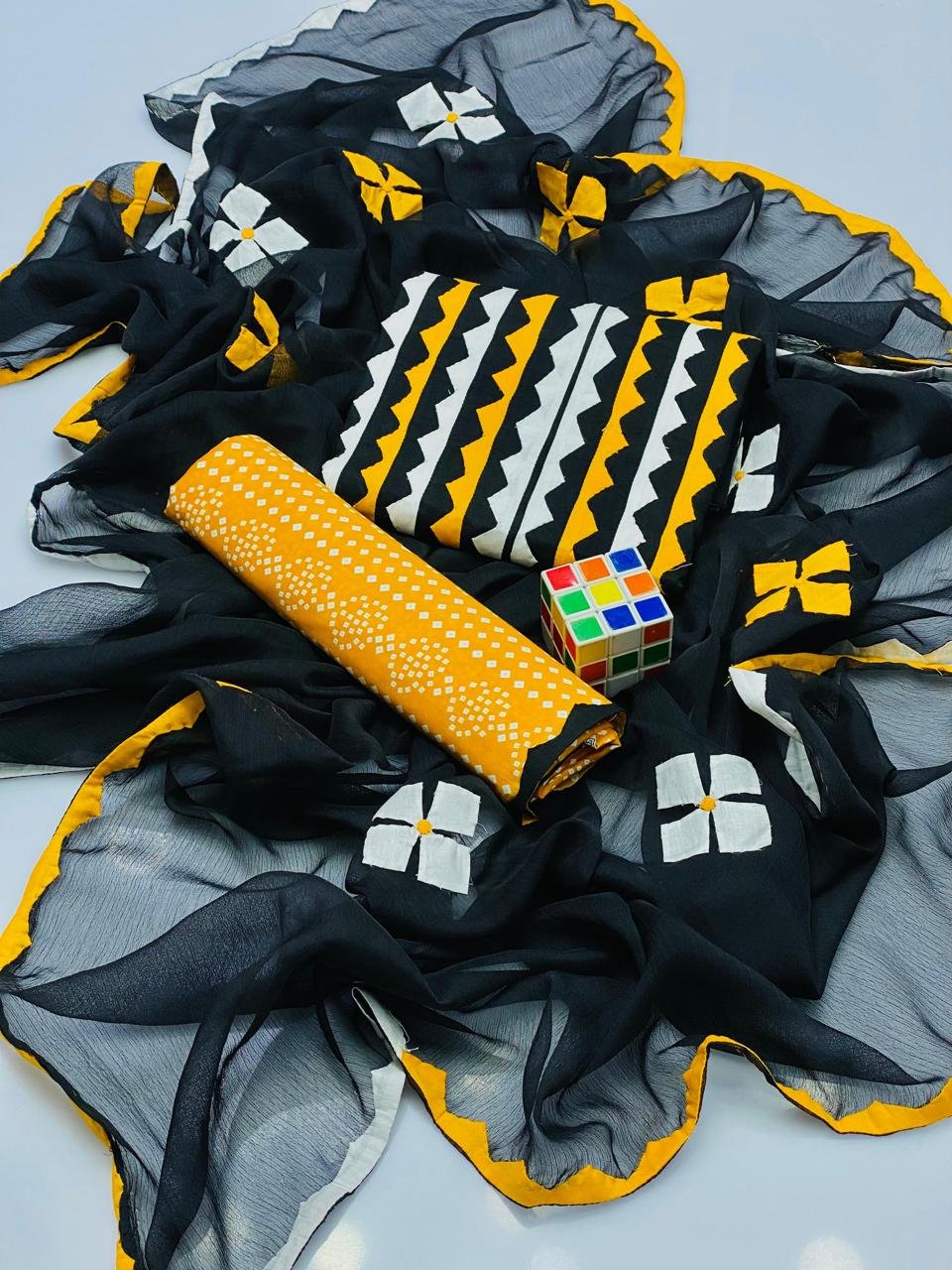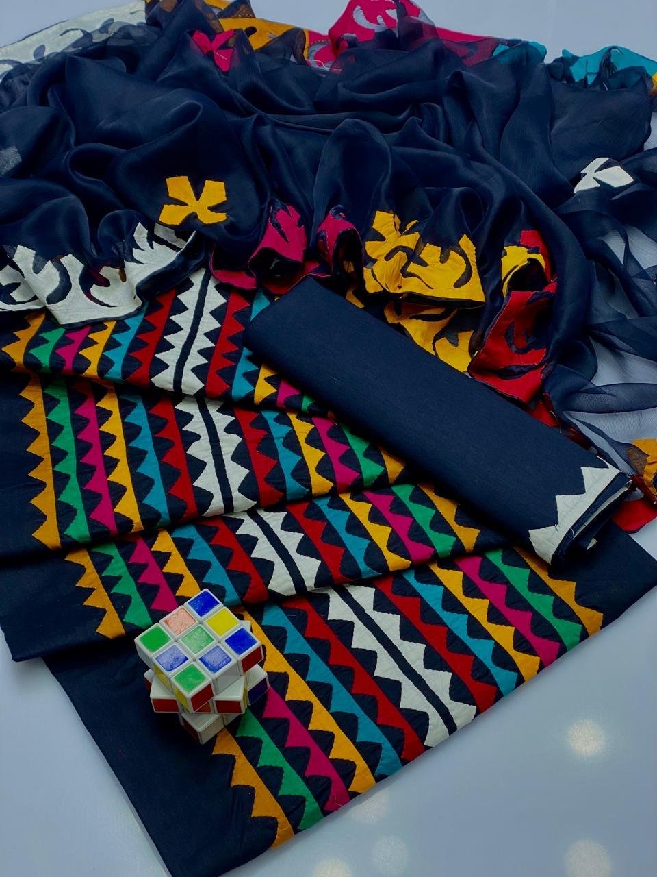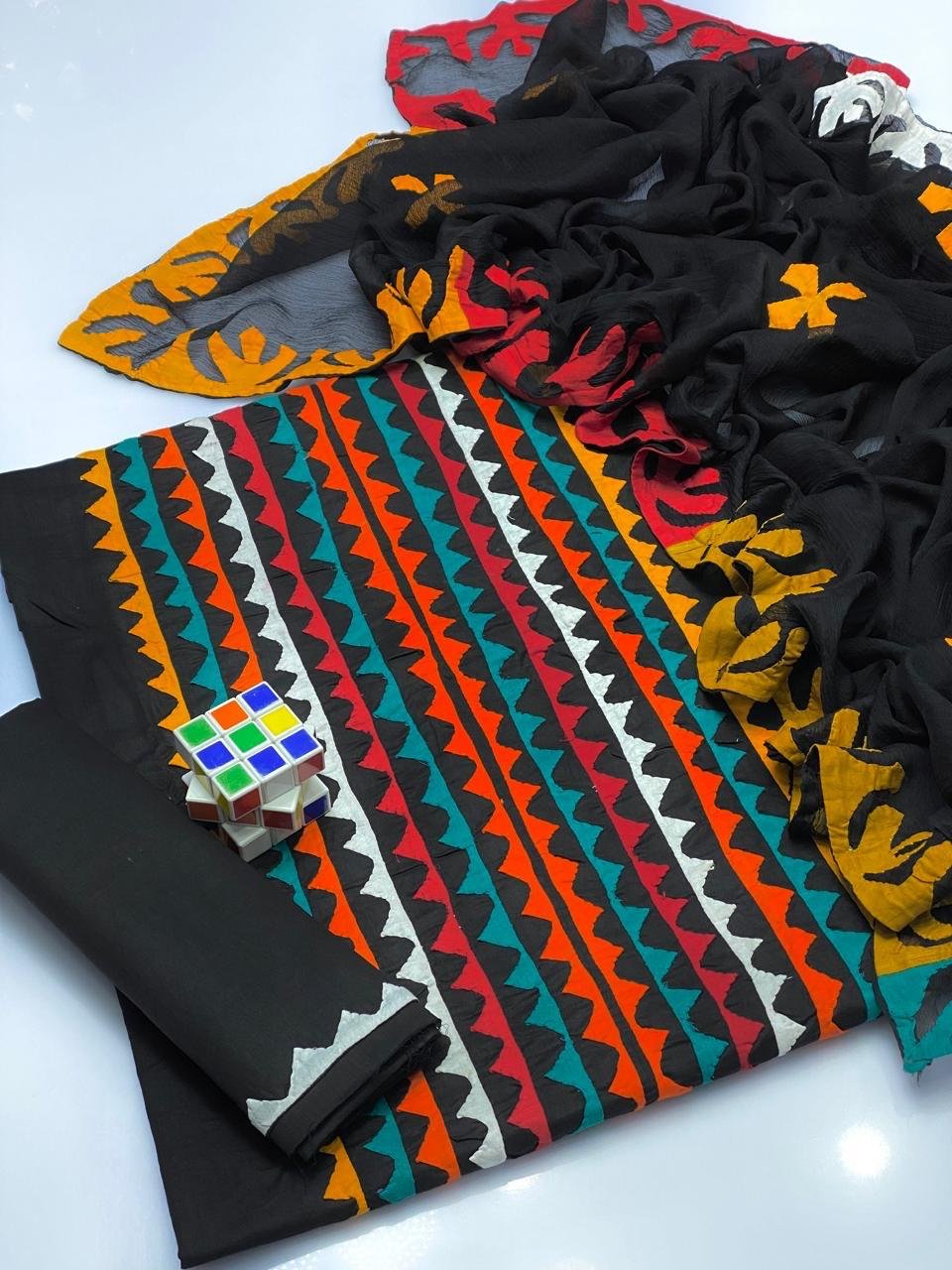 - 🌸 Applique Special Big Flower 3PC Suit featuring beautifully handcrafted big floral applique work for a bold and elegant look.