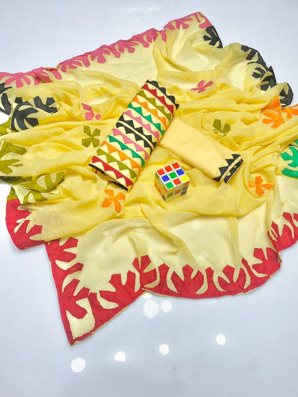 - ✨ Handmade Applique Work Sleeves enhanced with detailed stitching for a graceful finish.