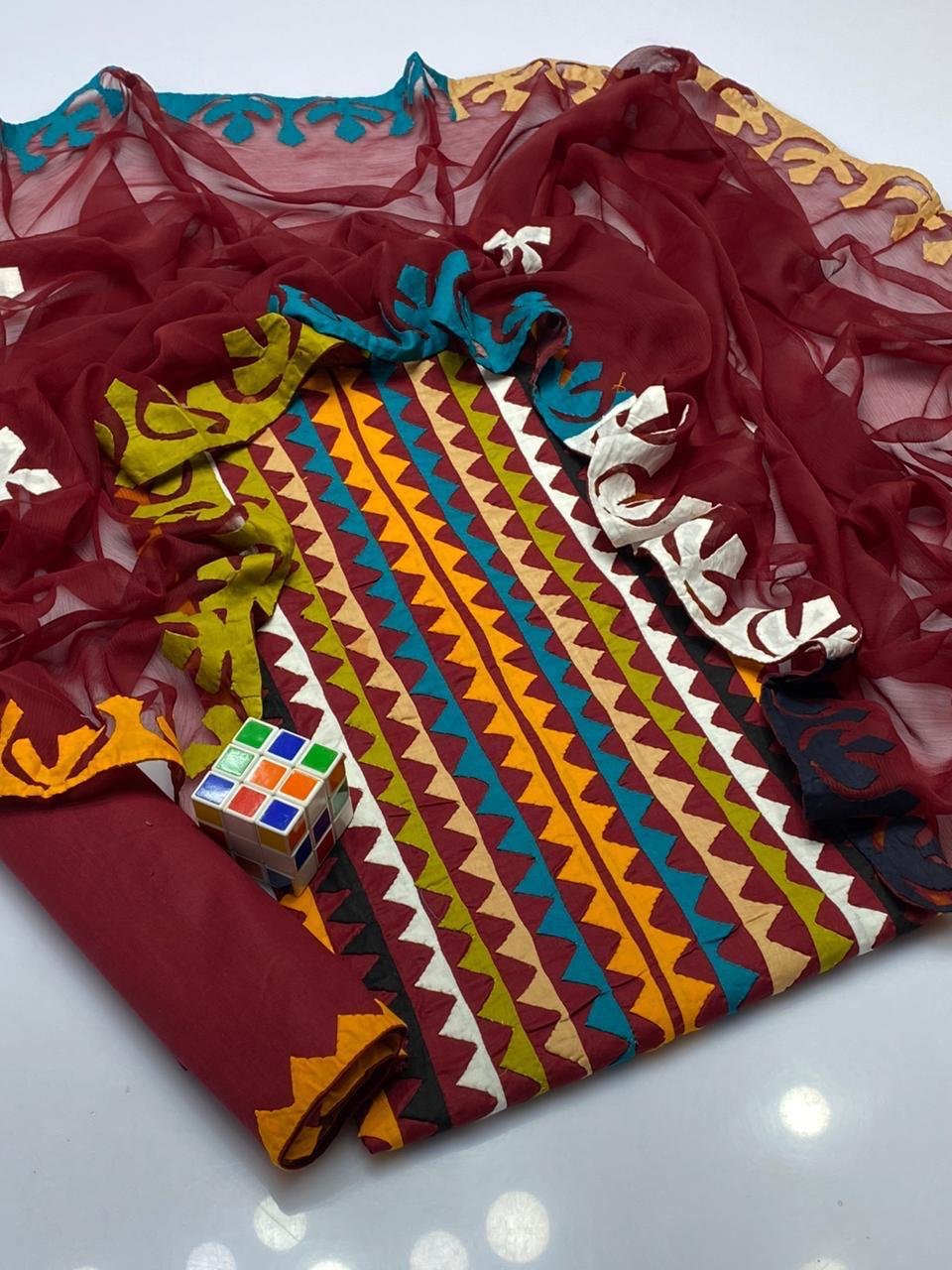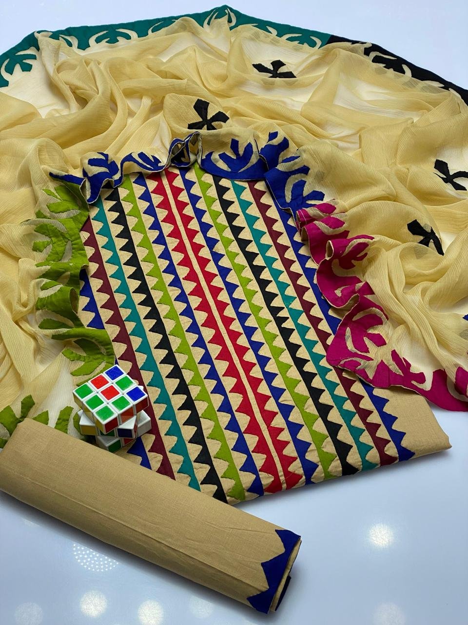- 👖 Matching Applique Work Trouser perfectly coordinated to complete the stylish 3 piece outfit.