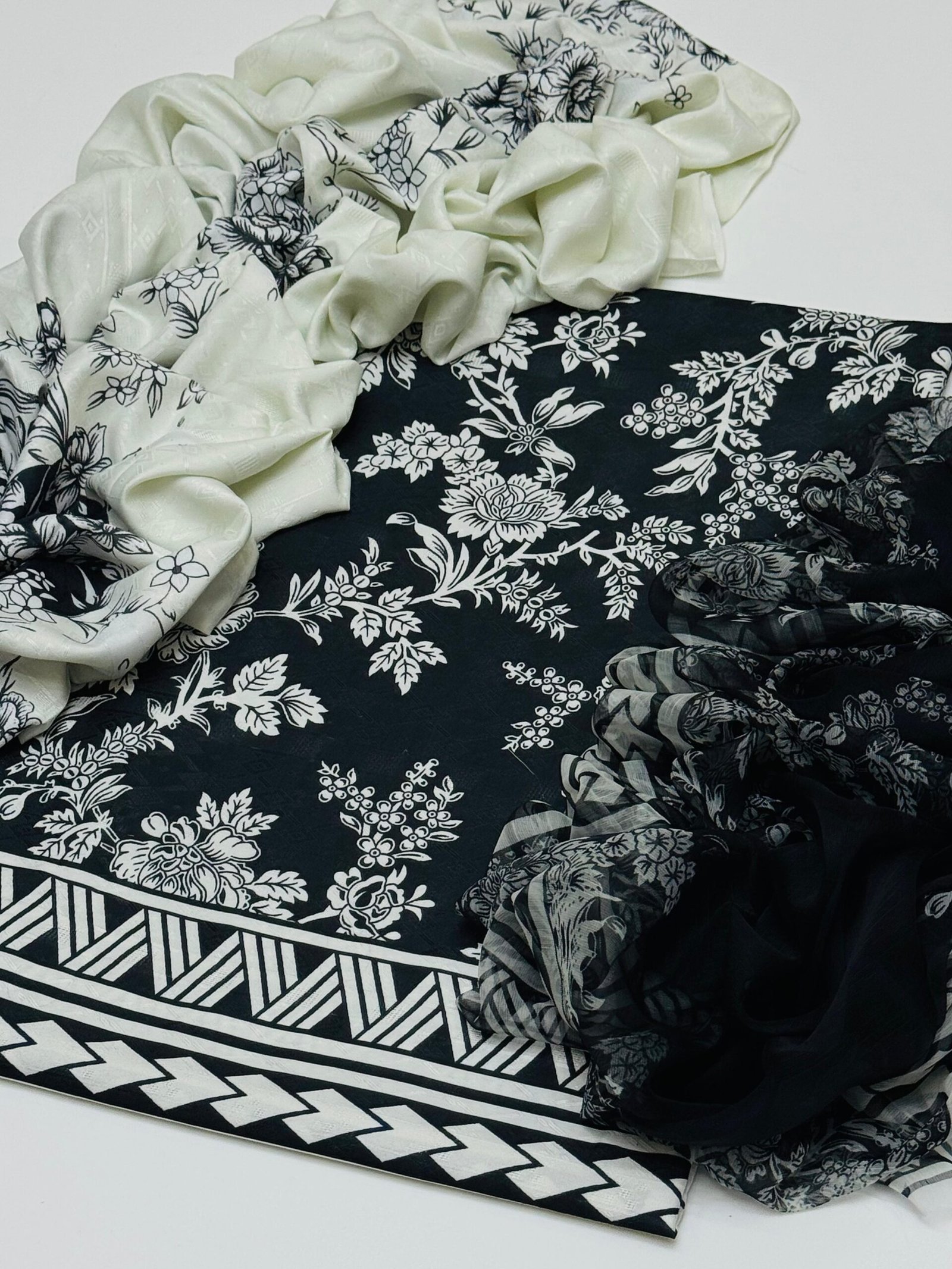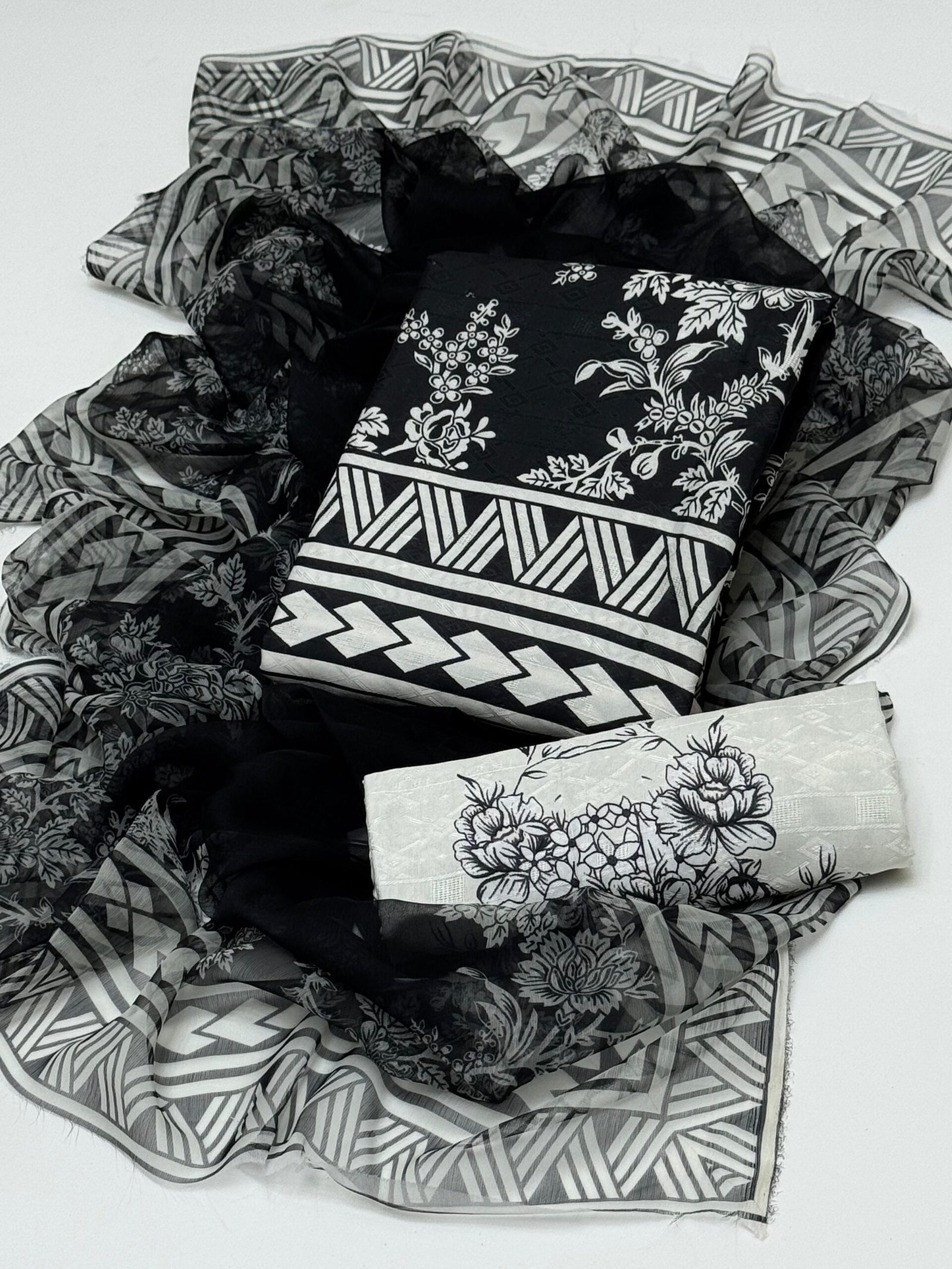 – Premium quality SELF Swiss JACQUARD lawn fabric digital printed trouser