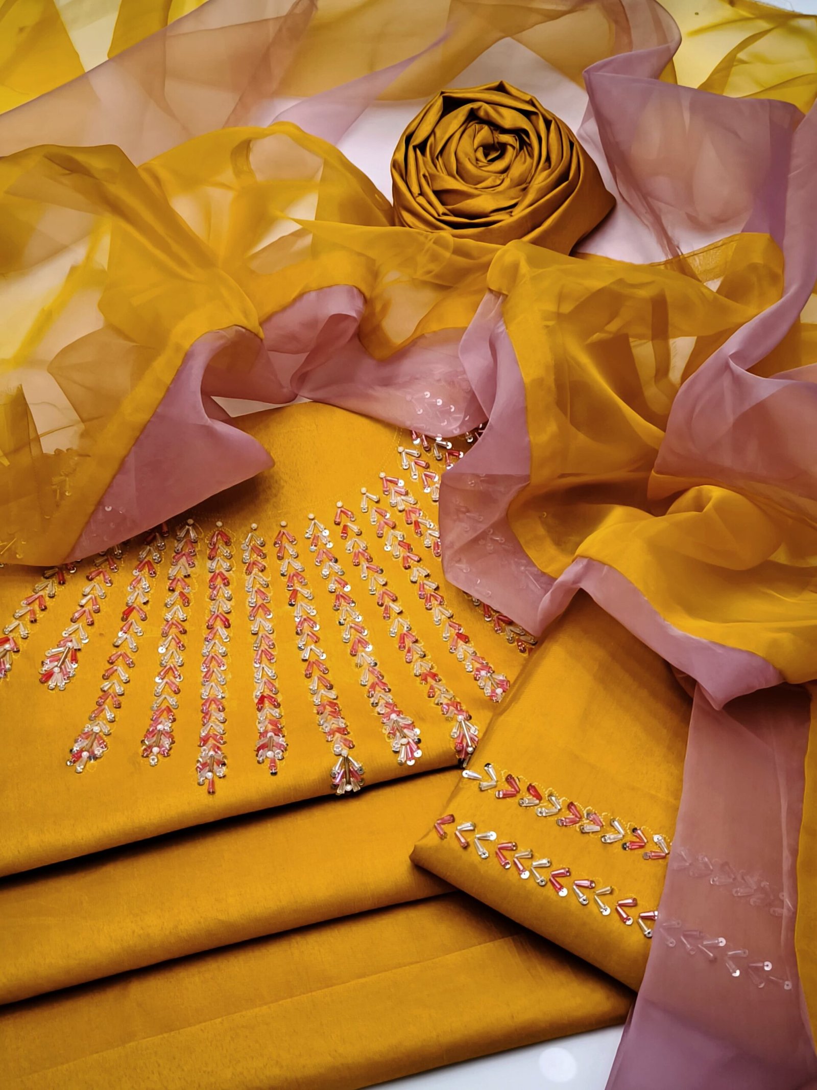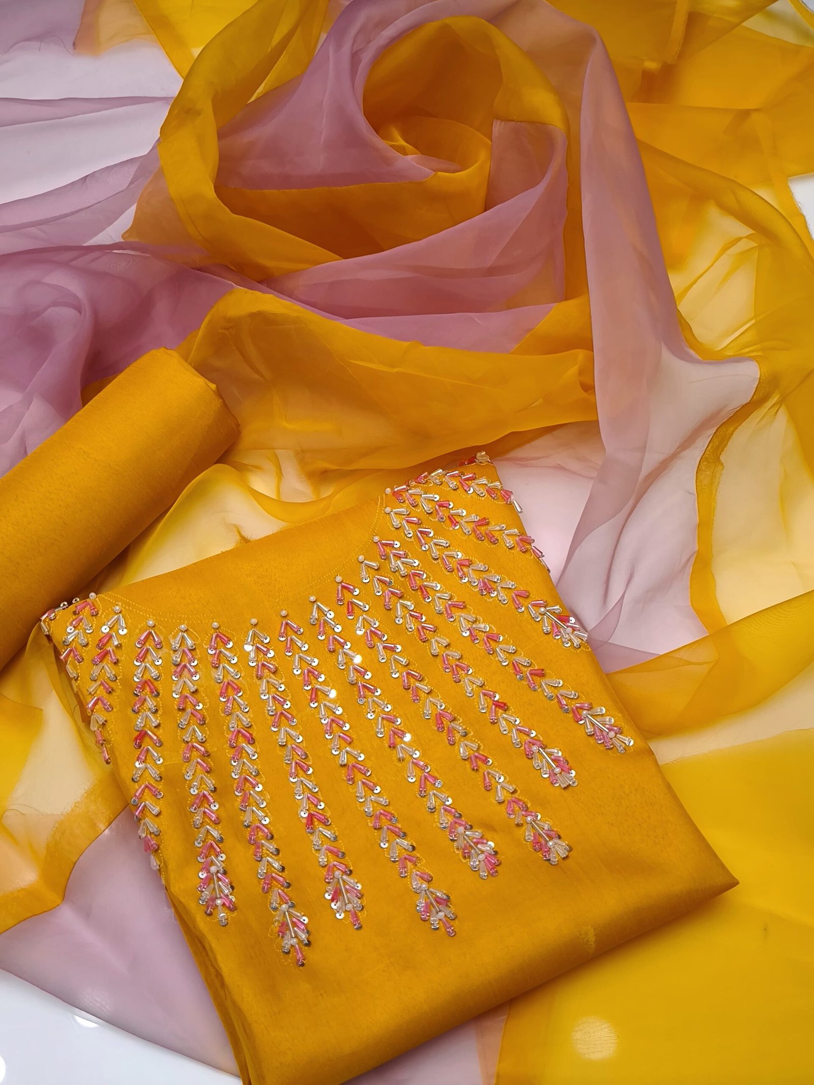 - 🧣 Multi-Color Designed Organza Dupatta adding a graceful festive touch