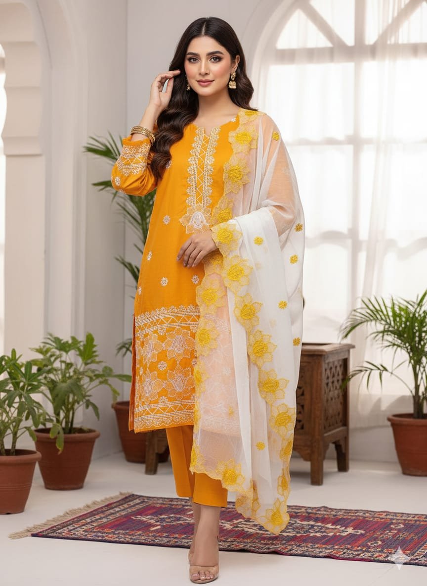 - 🌸 Premium Lawn 3 Piece Dress – soft & breathable fabric