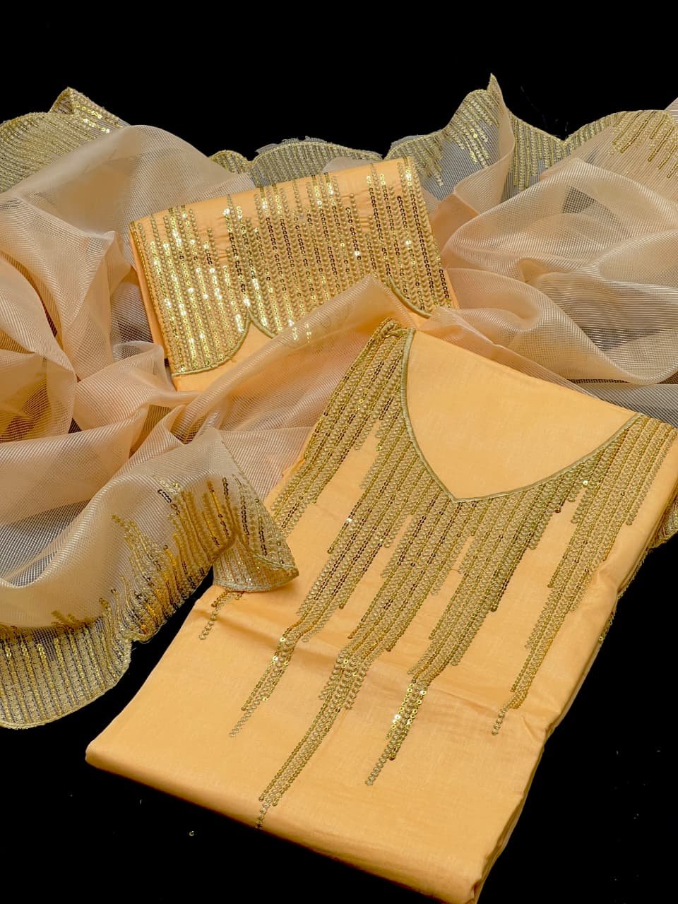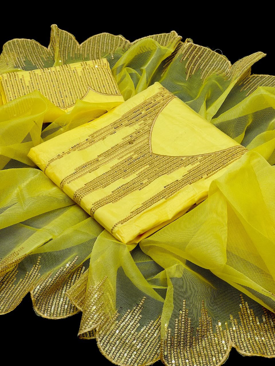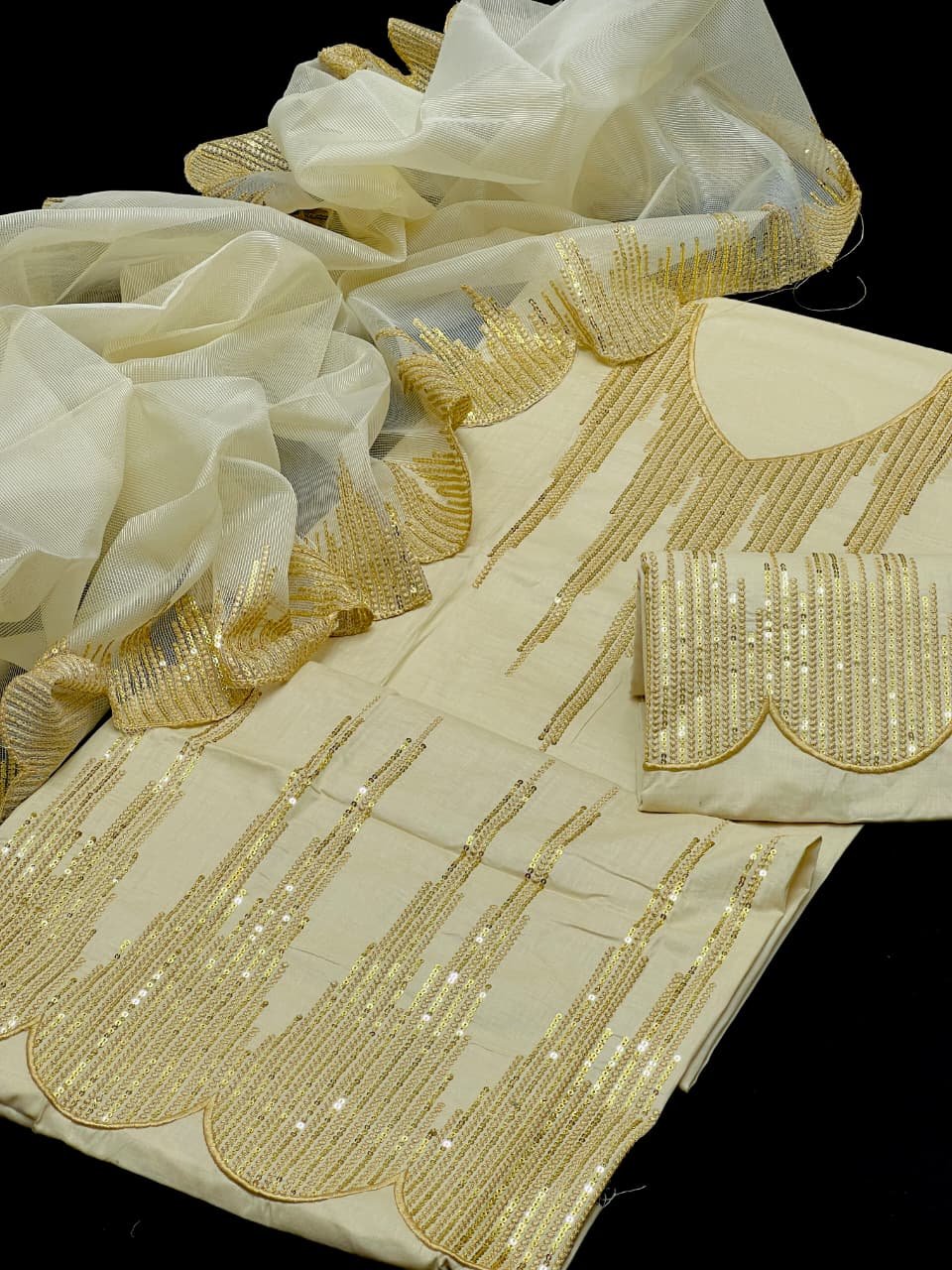 • 🧣 Khadi Net Cutwork Dupatta with 3mm Sequence Embroidery – stylish & graceful finish