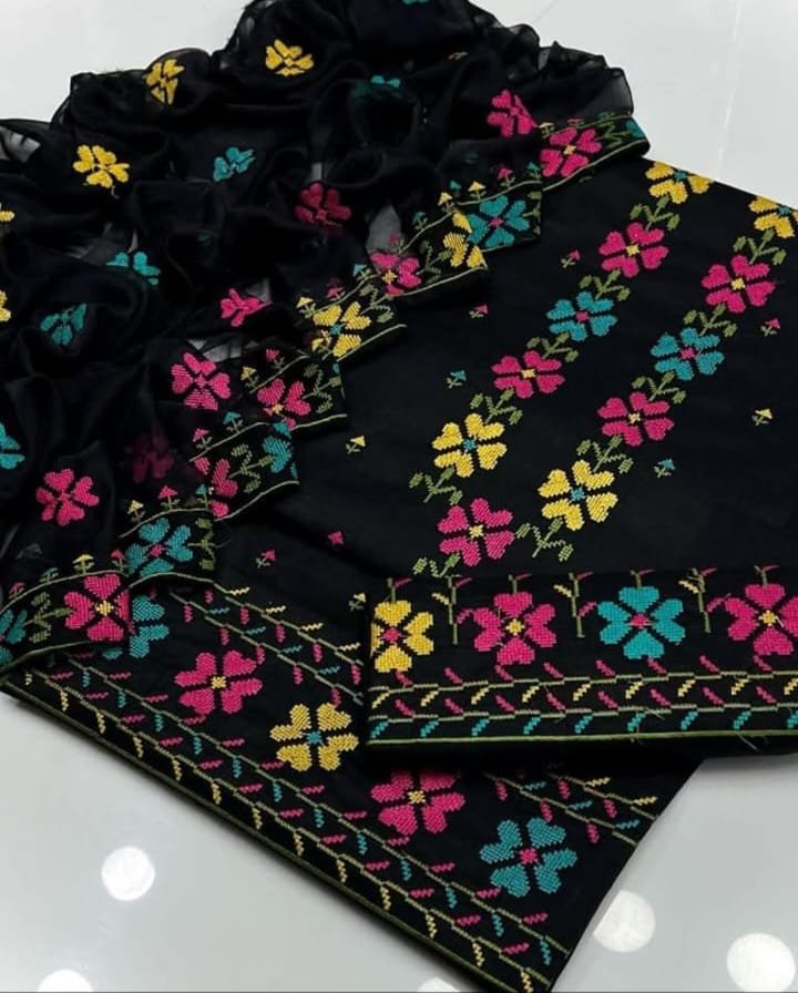 Lawn Cotton 3PC Suit with Cross Stitch Multi Gulab Embroidery
