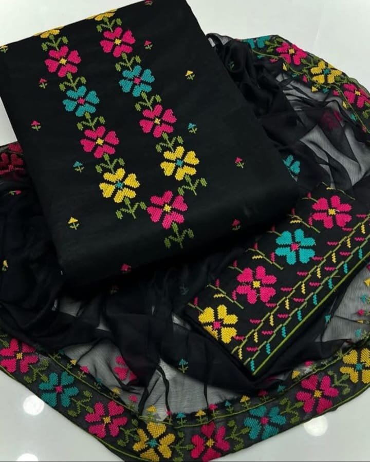 - 🌸 3 Piece Lawn Cotton Dress – Embroidered Shirt, Dupatta & Trouser