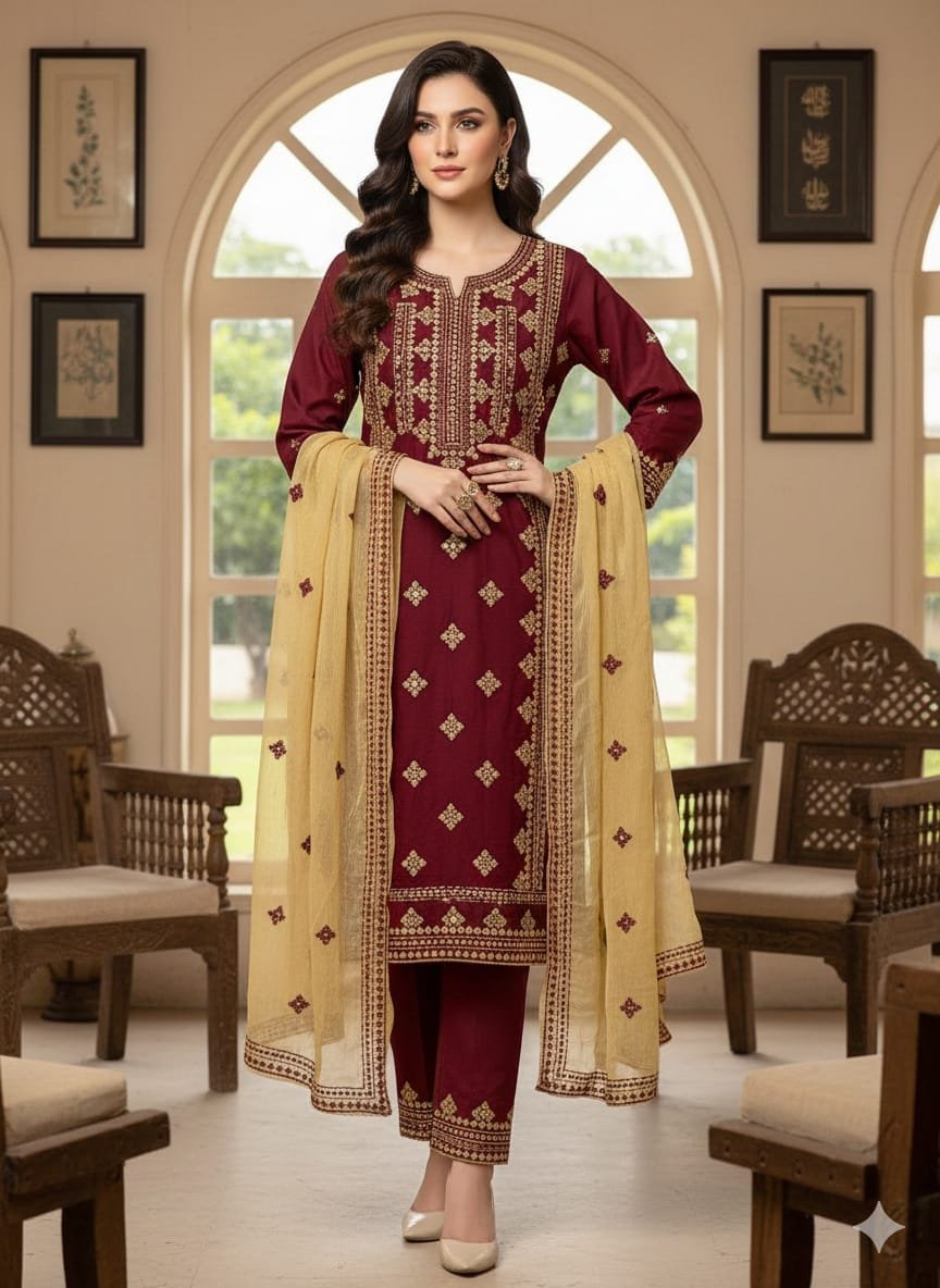 • 👗 Shirt: Front Full Gala Panel & Daman Embroidery 🪡