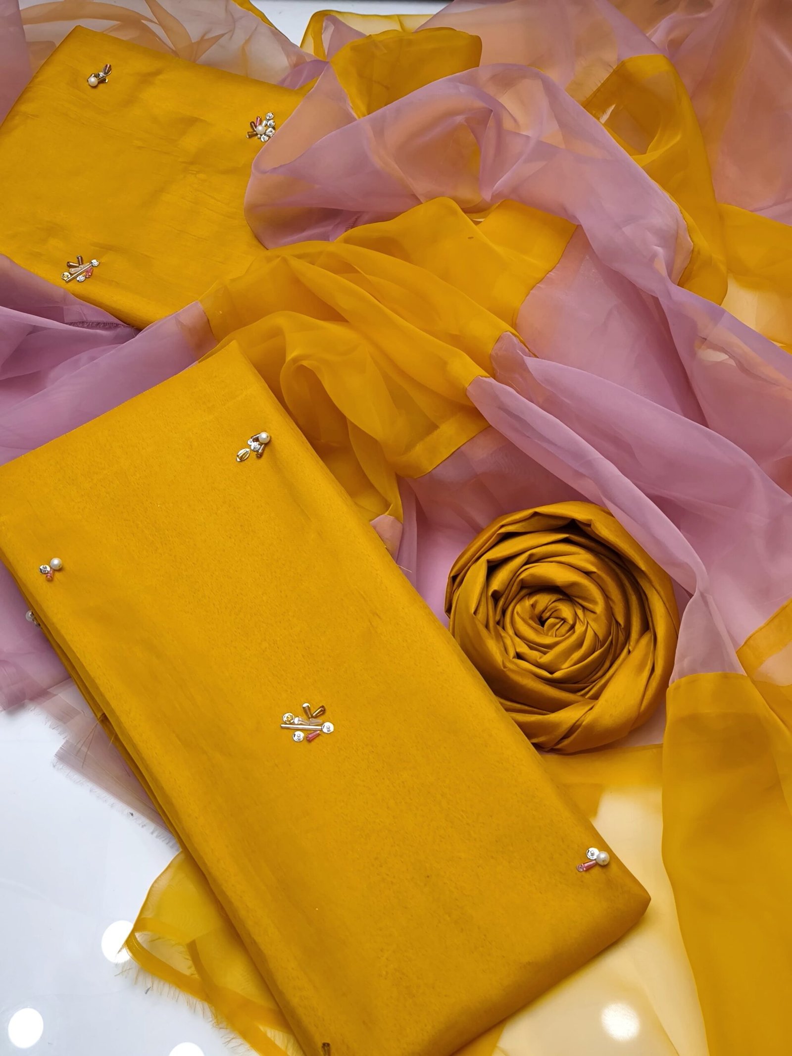 - ✨ Pure Organza Dupatta with latest 2-color fancy design