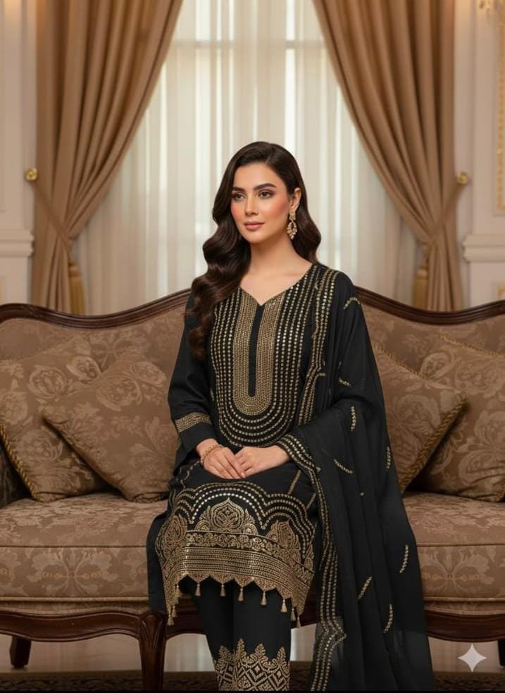 👖 Trouser: Lawn Cotton with 3mm Sequence Work