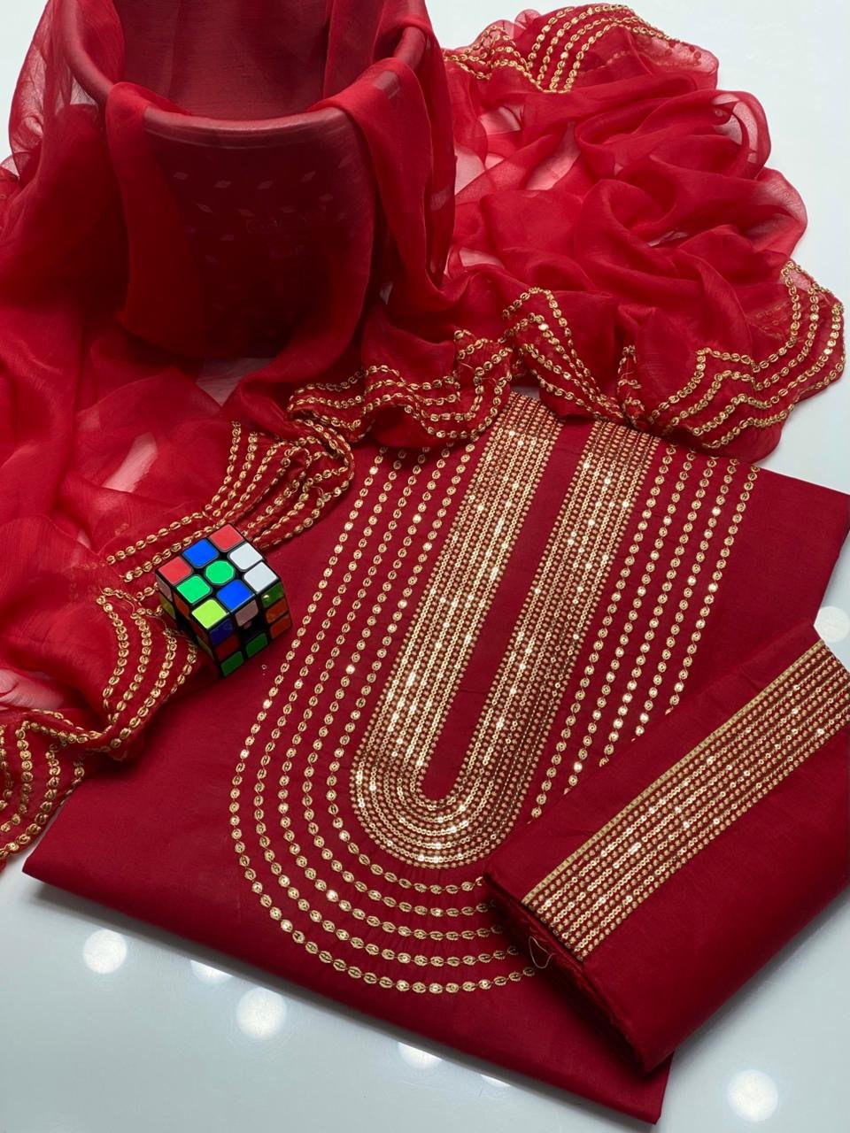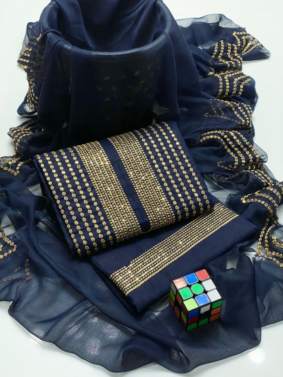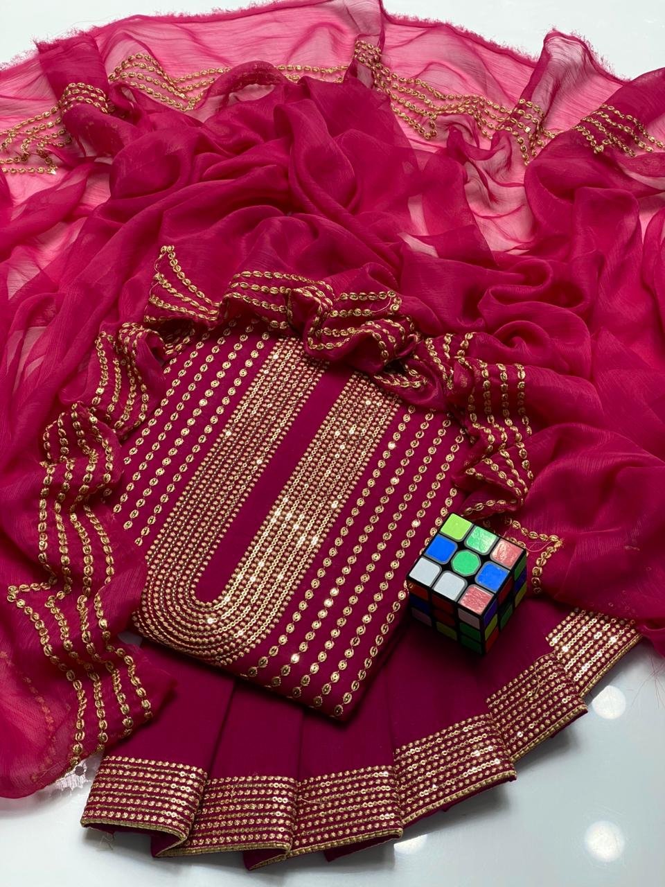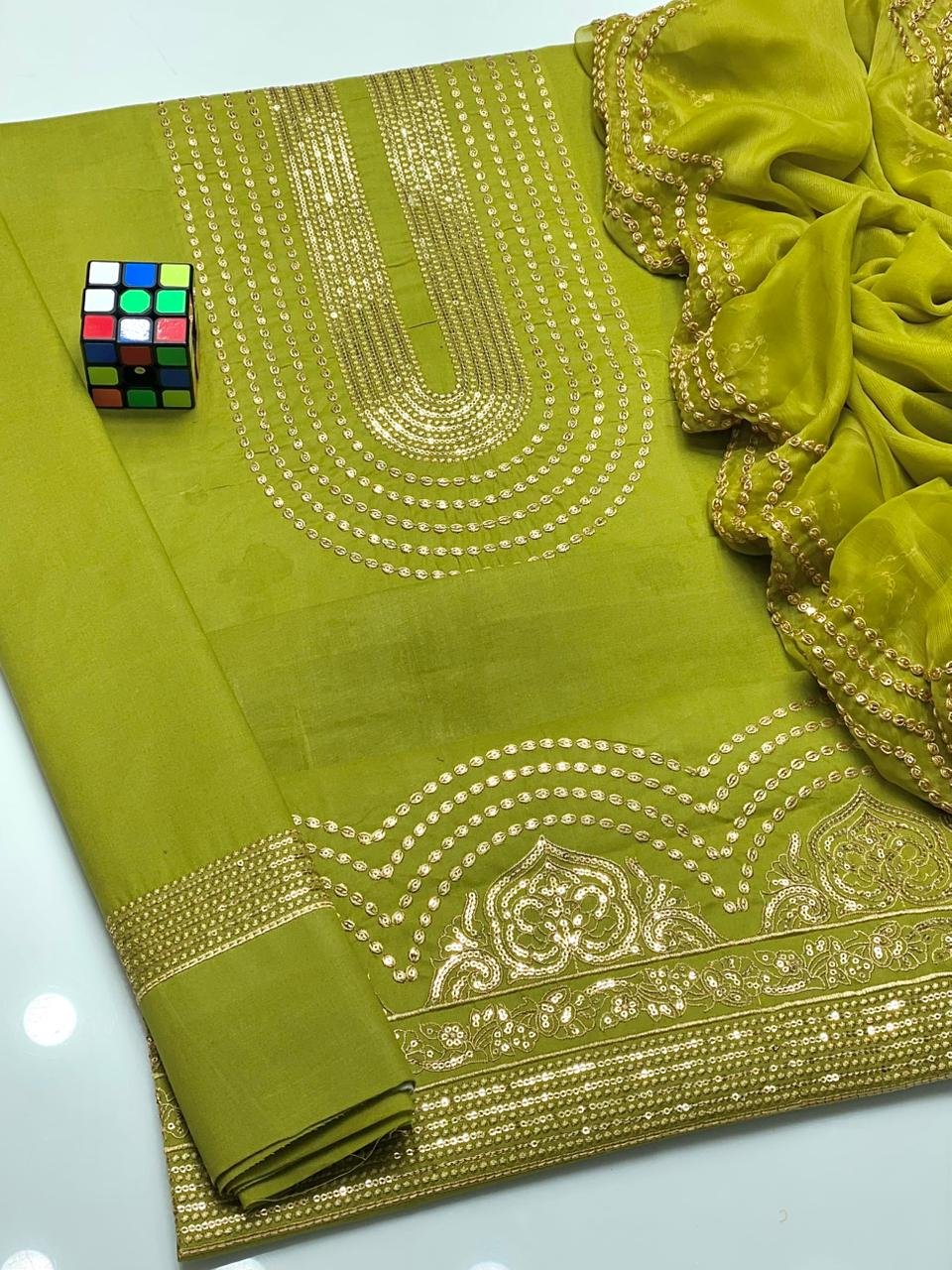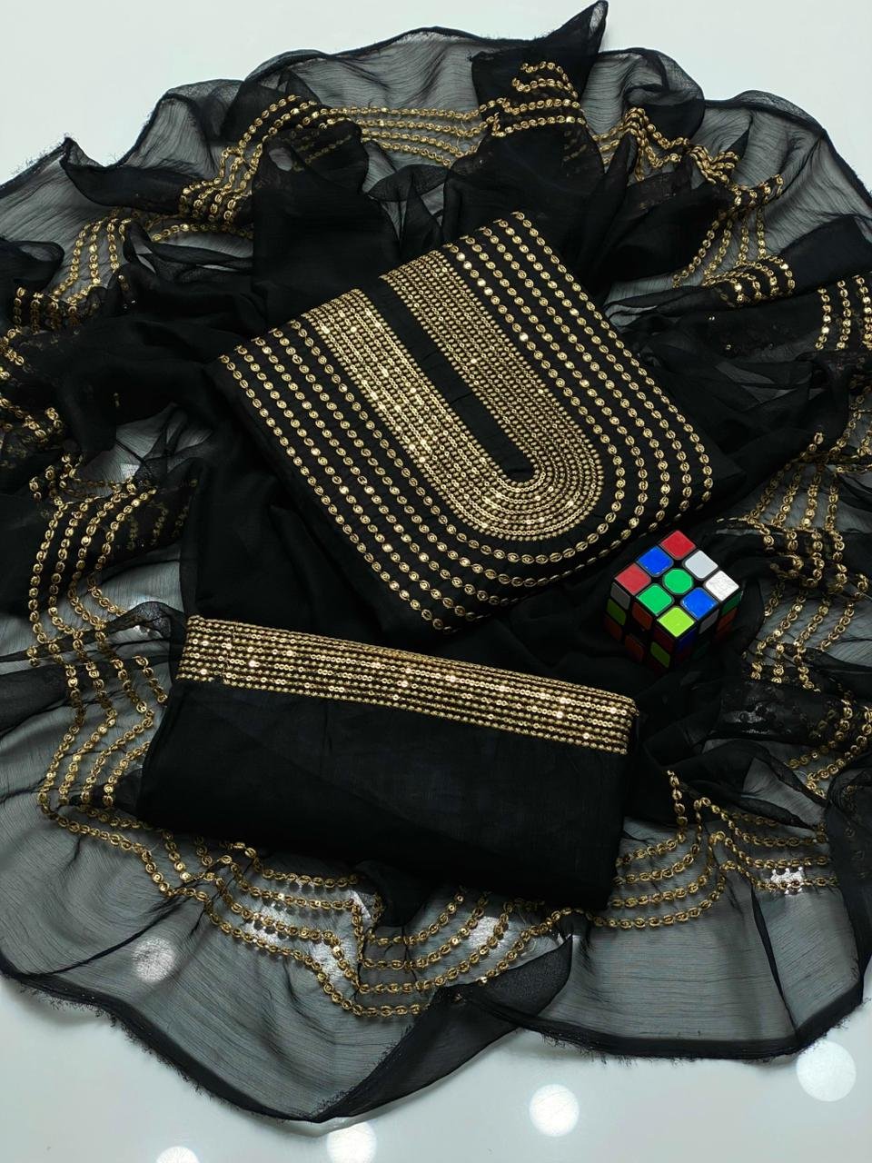 🧣 Dupatta: Chiffon with 3mm Sequence Work