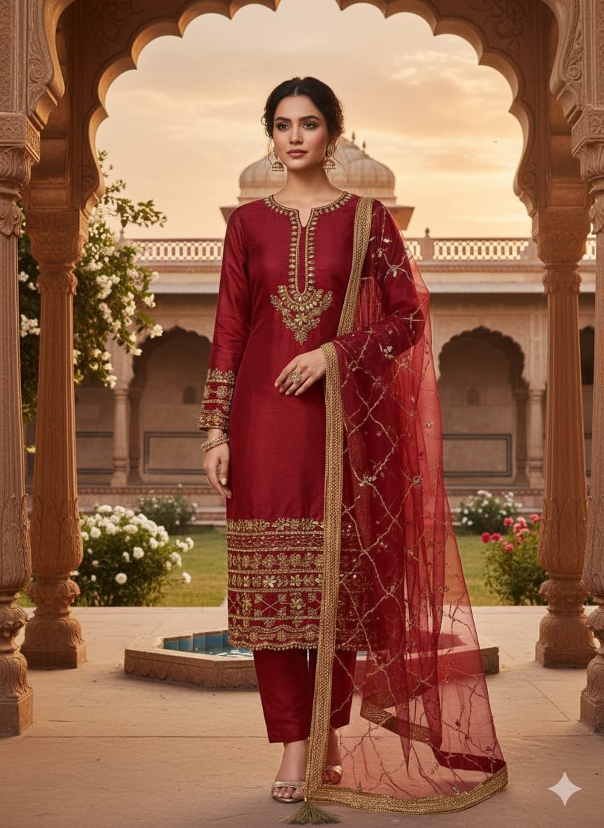 - ✨ Luxury 3 Piece Shine Kattan Silk Dress designed for a rich and elegant festive look.