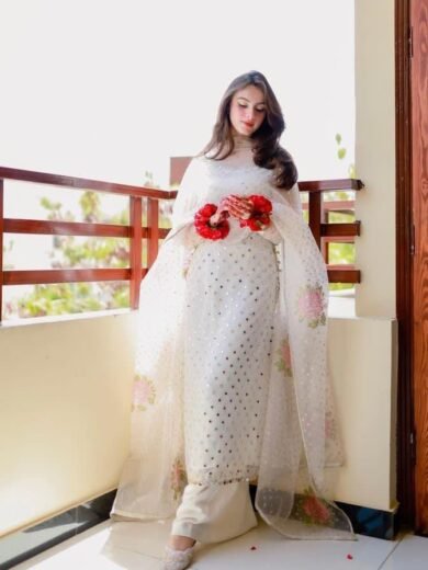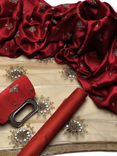 Pure Indian Organza 3PC Suit with Multi Embroidery & Nagina Work