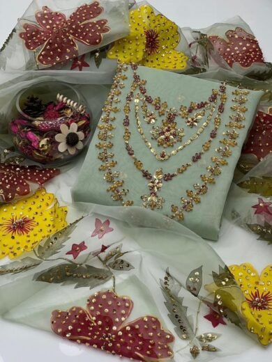 Handmade Adda Work Pure Organza 2PC Suit with Hand Painted Dupatta