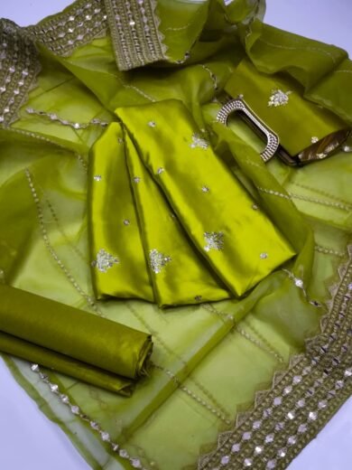 New Fancy Collection 3PC Shine Kattan Silk Suit with Real Mirror Work